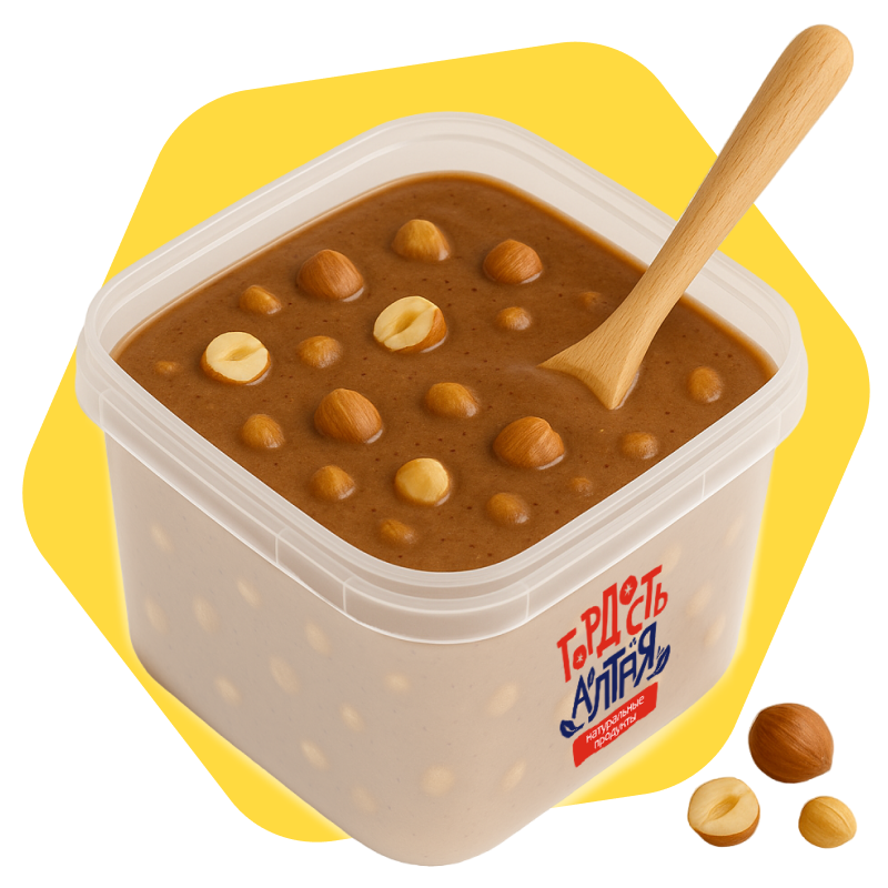 Продукт не содержит сахара, ароматизаторов и консервантов. Идеально подходит как альтернатива шоколадно-ореховым пастам — но полностью натуральная, на мёде.